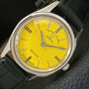 VINTAGE FAVRE LEUBA SEA KING HAND-WINDING SWISS MENS YELLOW DIAL WATCH a703821-1