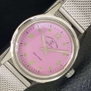 VINTAGE FAVRE LEUBA SEA KING 112 HAND-WINDING SWISS MENS PINK WATCH a703706-1
