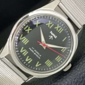 VINTAGE HMT HAND-WINDING INDIAN MENS ROMAN FIGURE BLACK DIAL WATCH a702846-1