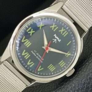 HAND-WINDING VINTAGE HMT INDIAN MENS ROMAN FIGURE GREEN DIAL WATCH a702877-1