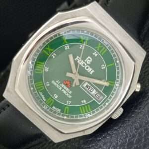 JAPAN VINTAGE RICOH R31 AUTOMATIC MENS GREEN COLOR DIAL WATCH a703523-1