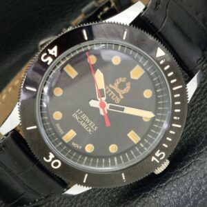 SWISS 40MM TITUS MENS REFURBISHED BALCK DIAL WATCH WITH TURNABLE BEZEL a425319-a