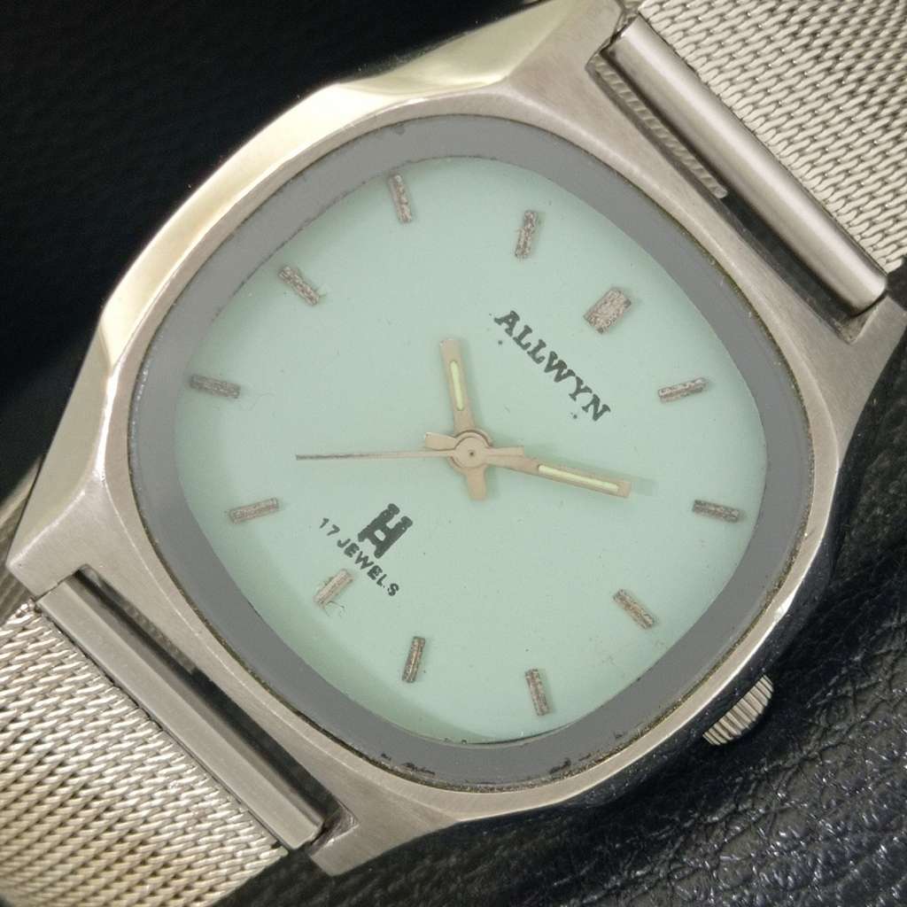 ALLWYN HAND-WINDING 6300A INDIA MENS VINTAGE SEA GREEN DIAL WATCH a704008-1