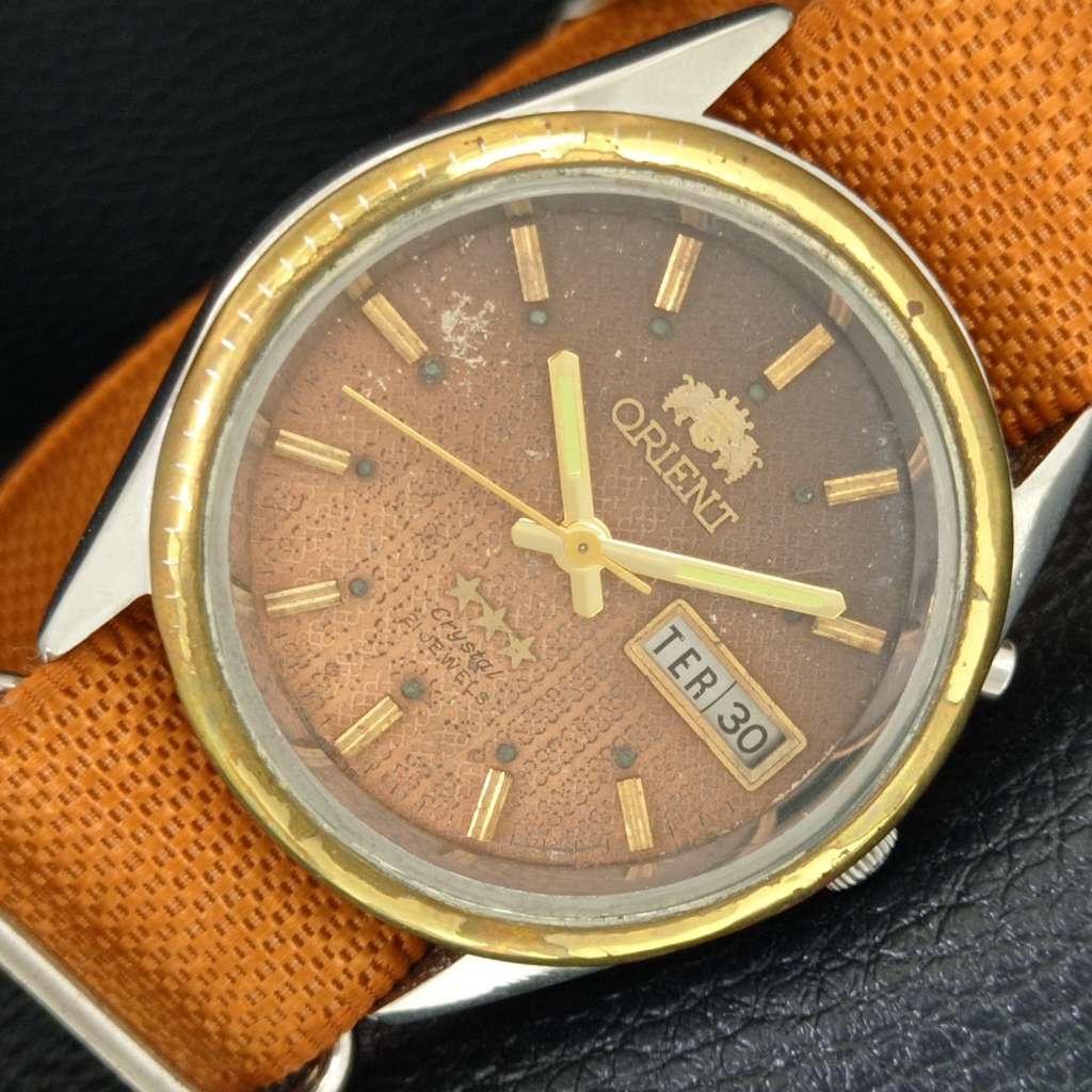 AUTOMATIC 46943 VINTAGE ORIENT CRYSTAL JAPAN MENS ORIGINAL DIAL WATCH a704973-1