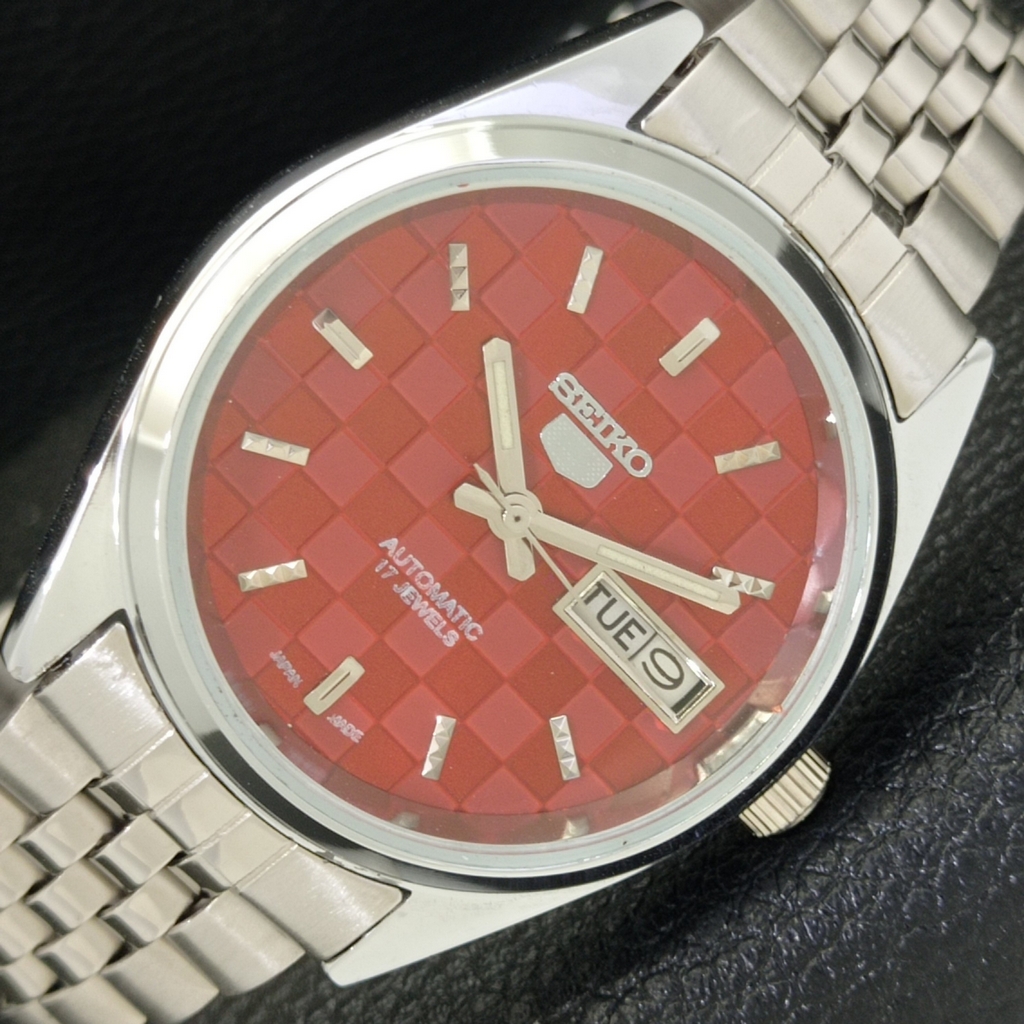 AUTOMATIC SEIKO 5 JAPAN MENS 6309A REFURBISHED RED COLOR DIAL WATCH a440330-1