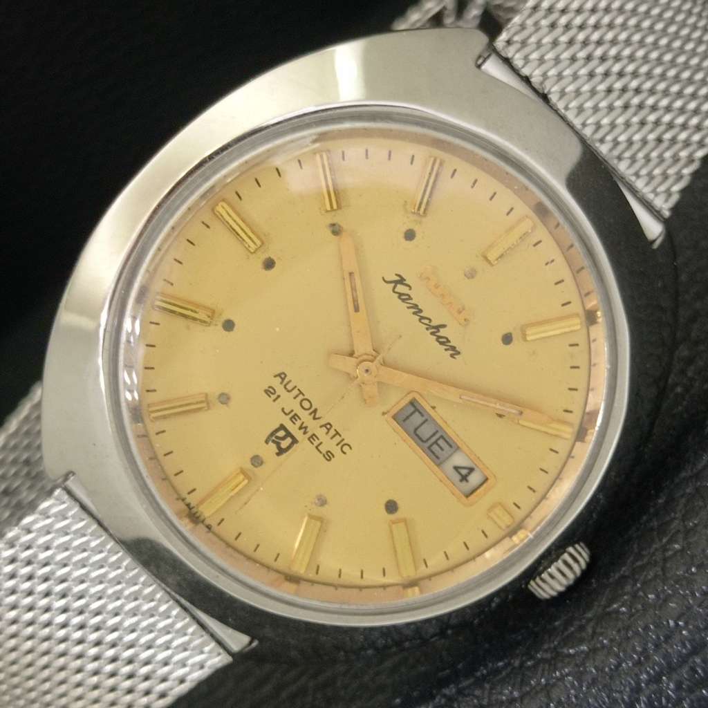 AUTOMATIC VINTAGE HMT KANCHAN 6501 INDIAN MENS GOLDEN COLOR DIAL WATCH a703265-1