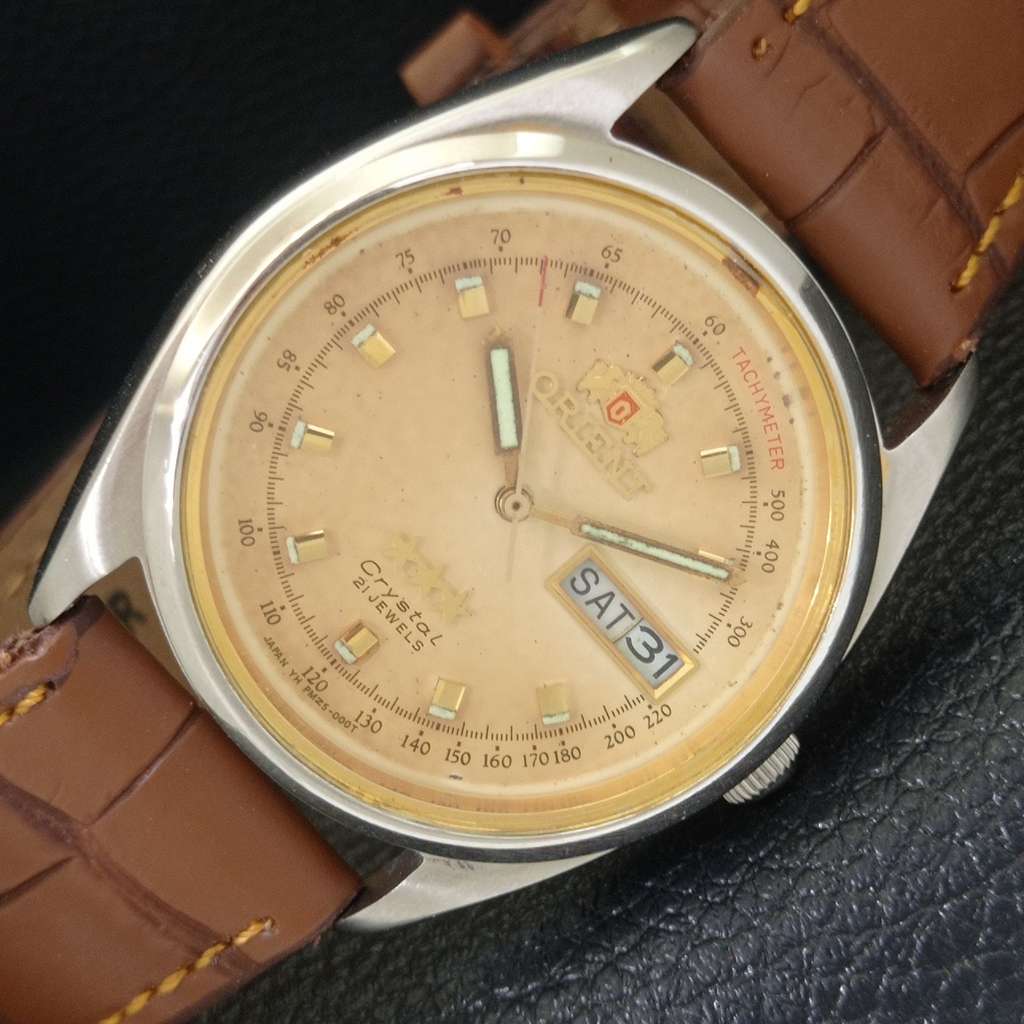 AUTOMATIC VINTAGE ORIENT CRYSTAL 42068 JAPAN MENS ORIGINAL DIAL WATCH a703469-1