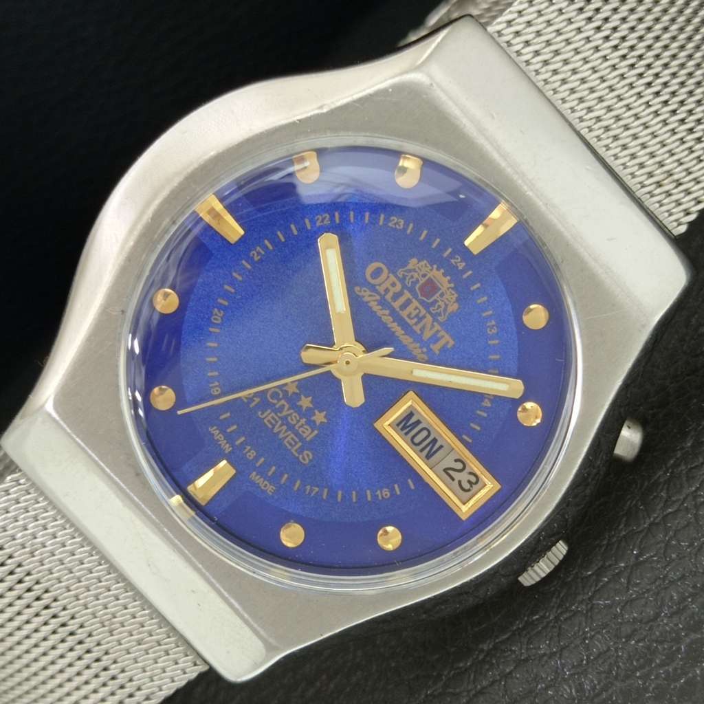 AUTOMATIC VINTAGE ORIENT CRYSTAL 46741 JAPAN MENS BLUE DIAL WATCH a706918-1