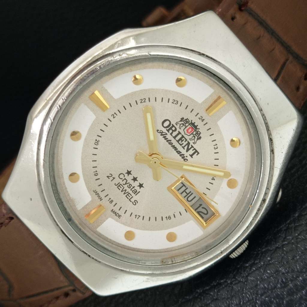AUTOMATIC VINTAGE ORIENT CRYSTAL 46941 JAPAN MENS SILVER DIAL WATCH a706891-1