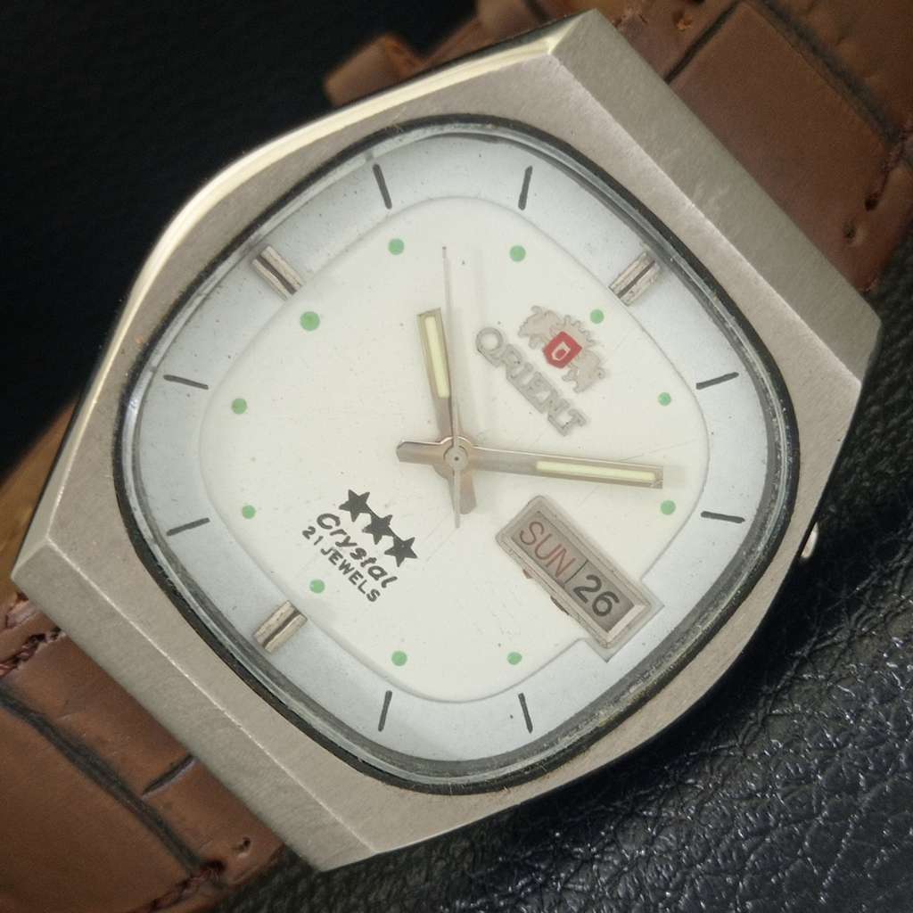 AUTOMATIC VINTAGE ORIENT CRYSTAL 46941 JAPAN MENS WHITE DIAL WATCH a703422-1