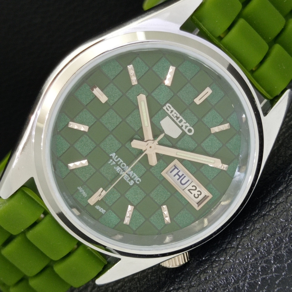 AUTOMATIC VINTAGE REFURBISHED SEIKO 5 JAPAN MENS GREEN DIAL WATCH a440433-1