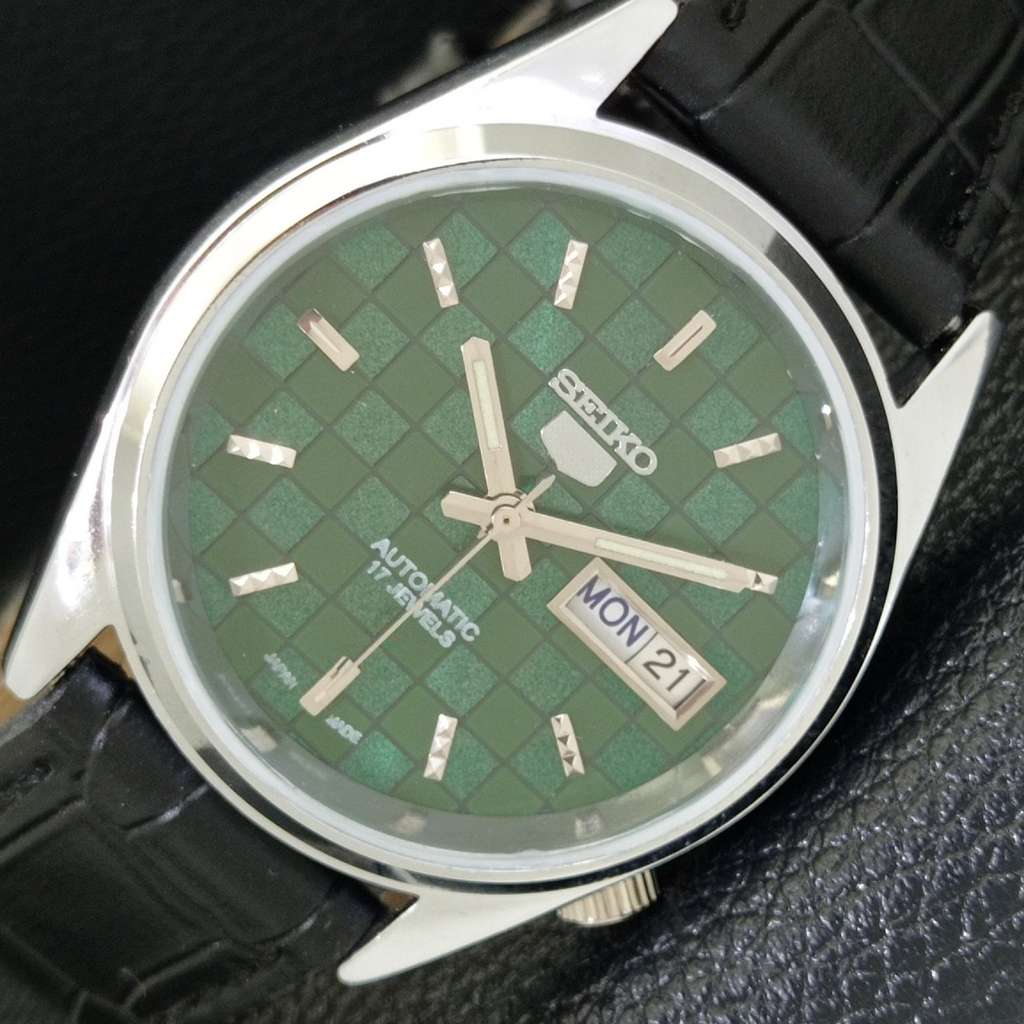 AUTOMATIC VINTAGE REFURBISHED SEIKO 5 JAPAN MENS GREEN DIAL WATCH a440457-d