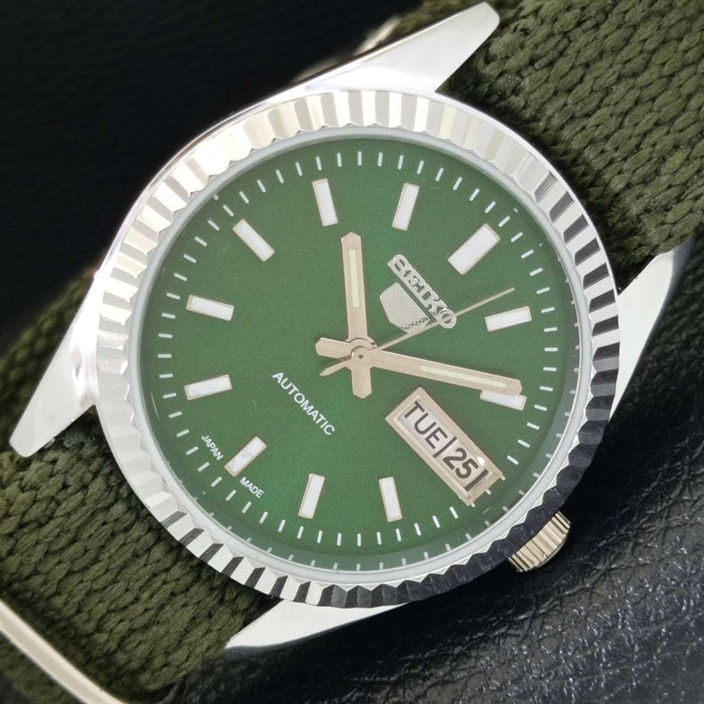 AUTOMATIC VINTAGE REFURBISHED SEIKO 5 JAPAN MENS GREEN DIAL WATCH a440559-4
