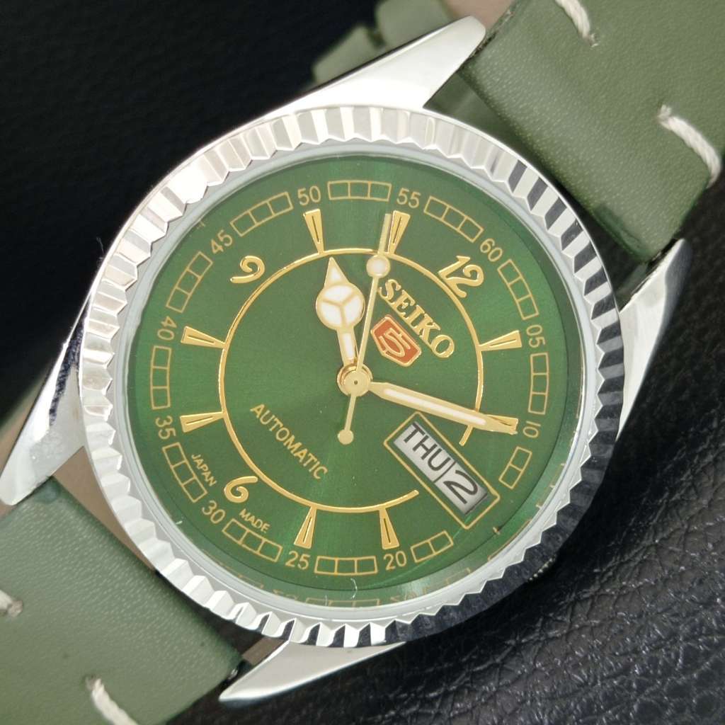 AUTOMATIC VINTAGE REFURBISHED SEIKO 5 JAPAN MENS GREEN DIAL WATCH a443297-1