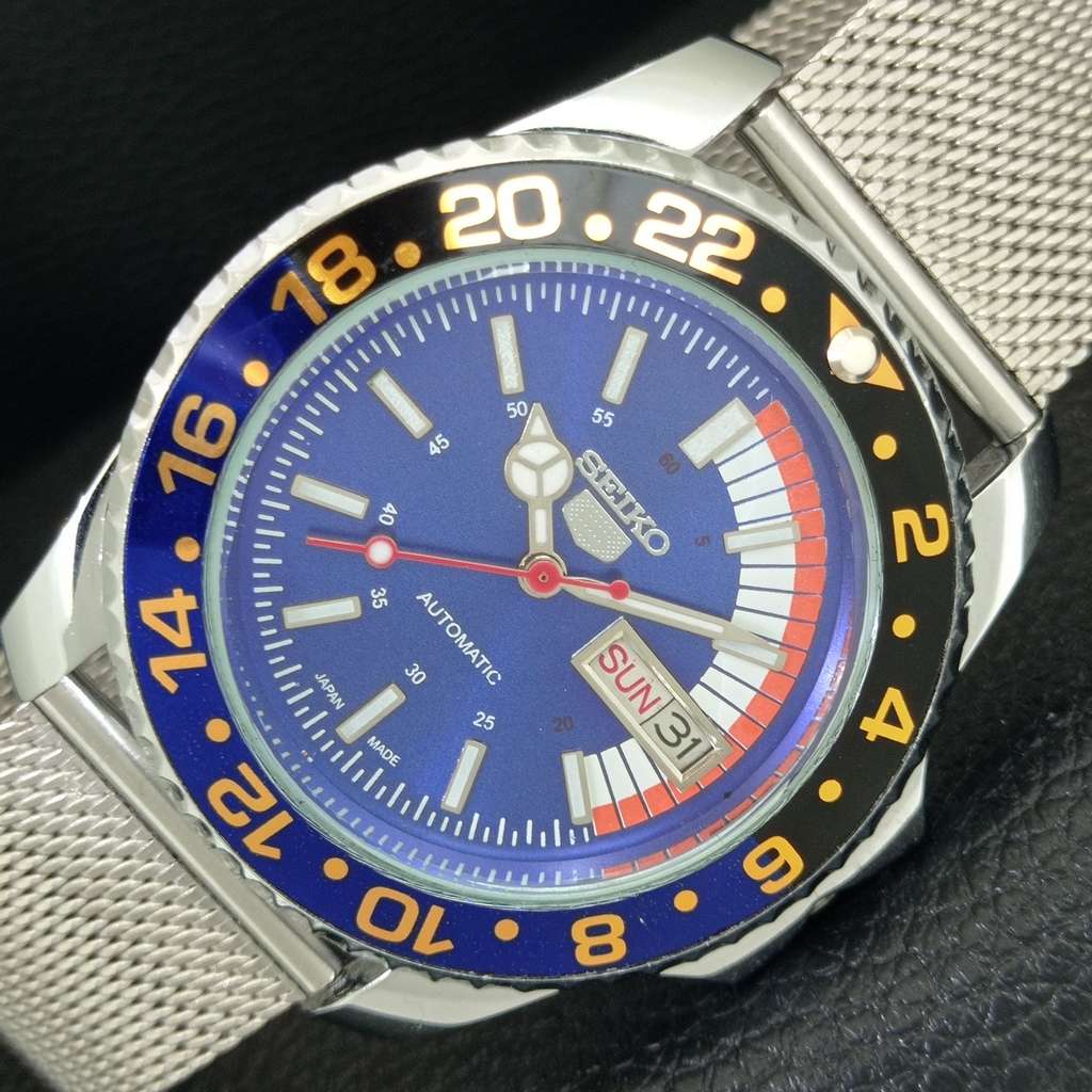 AUTOMATIC VINTAGE REFURBISHED SEIKO 5 JAPAN MENS MOVABLE BEZEL WATCH a443312-1