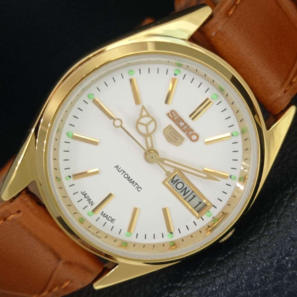 AUTOMATIC VINTAGE REFURBISHED SEIKO 5 JAPAN MENS WHITE DIAL WATCH a442345-1