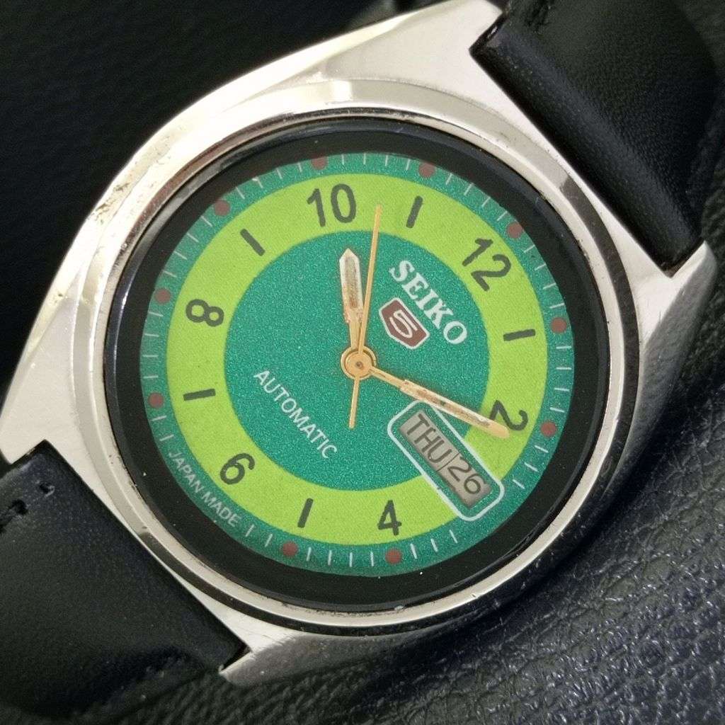 AUTOMATIC VINTAGE SEIKO 5 JAPAN 7009A MENS GREEN COLOR DIAL WATCH a702097-1