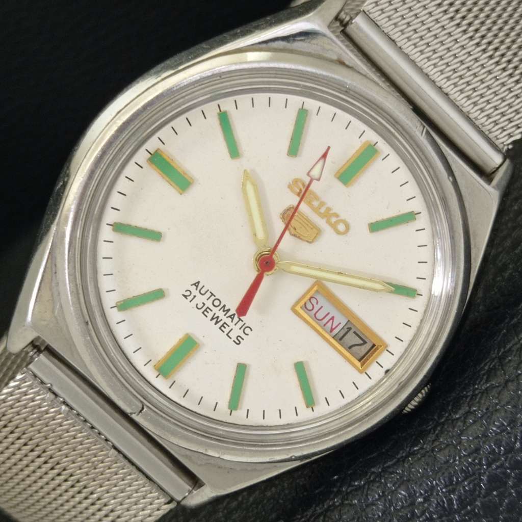 AUTOMATIC VINTAGE SEIKO 5 JAPAN MENS WHITE COLOR DIAL WATCH a702607-1