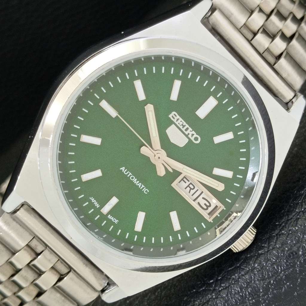 AUTOMATIC VINTAGE SEIKO 5 REFURBISHED JAPAN MENS GREEN DIAL WATCH a440652-a