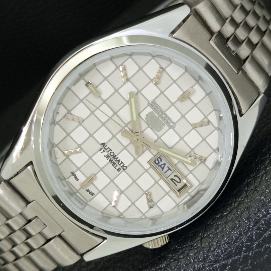 AUTOMATIC VINTAGE SEIKO 5 REFURBISHED JAPAN MENS WHITE DIAL WATCH a440474-6