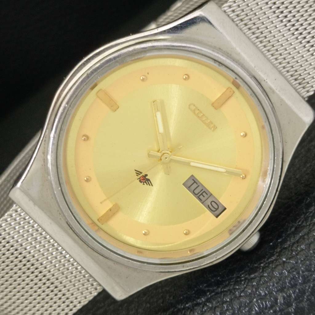 CITIZEN AUTOMATIC 8200 JAPAN MENS VINTAGE GOLDEN COLOR DIAL WATCH a702755-1