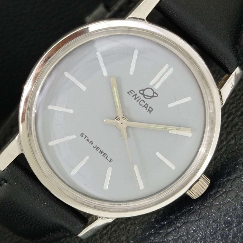 ENICAR STAR JEWELS HAND-WINDING 1140 VINTAGE SWISS MENS GREY WATCH a702040-1