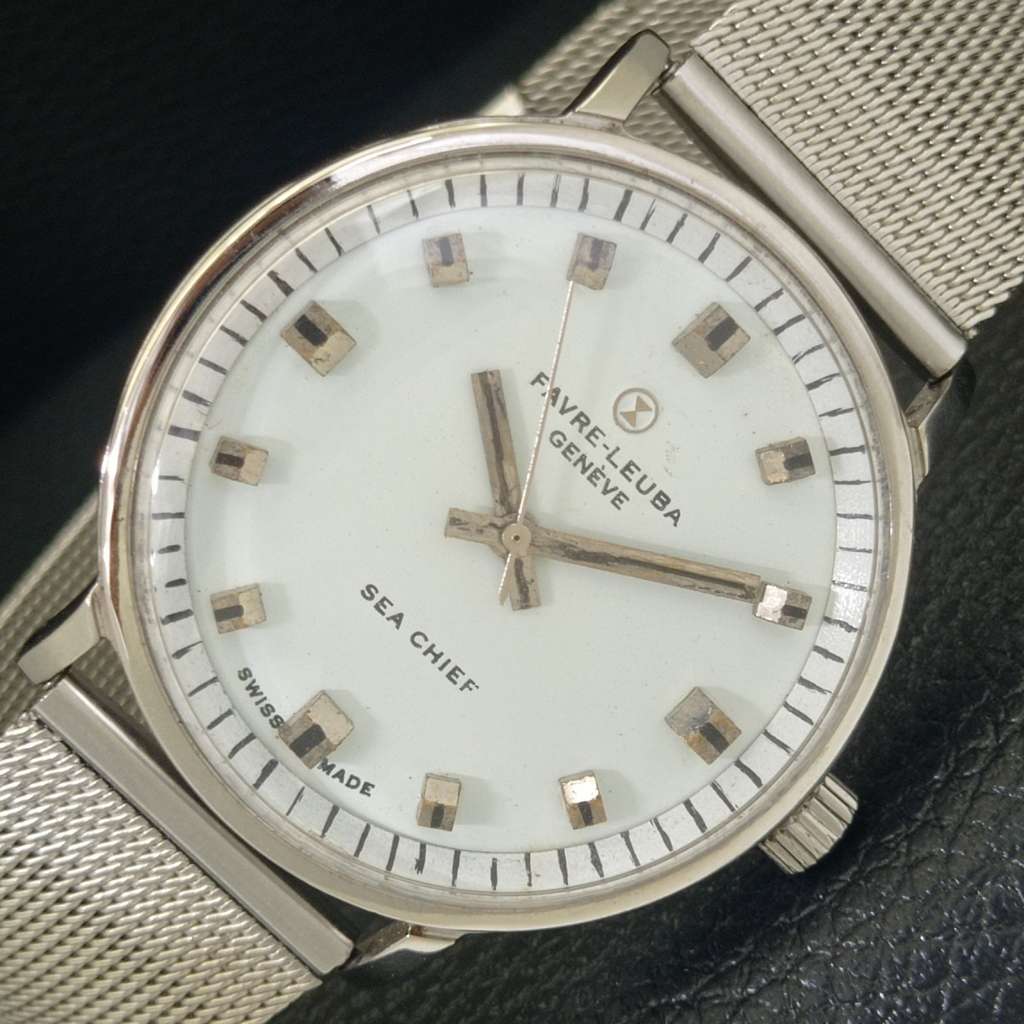 FAVRE LEUBA SEA CHIEF VINTAGE HAND-WINDING SWISS MENS WHITE DIAL WATCH a703837-1