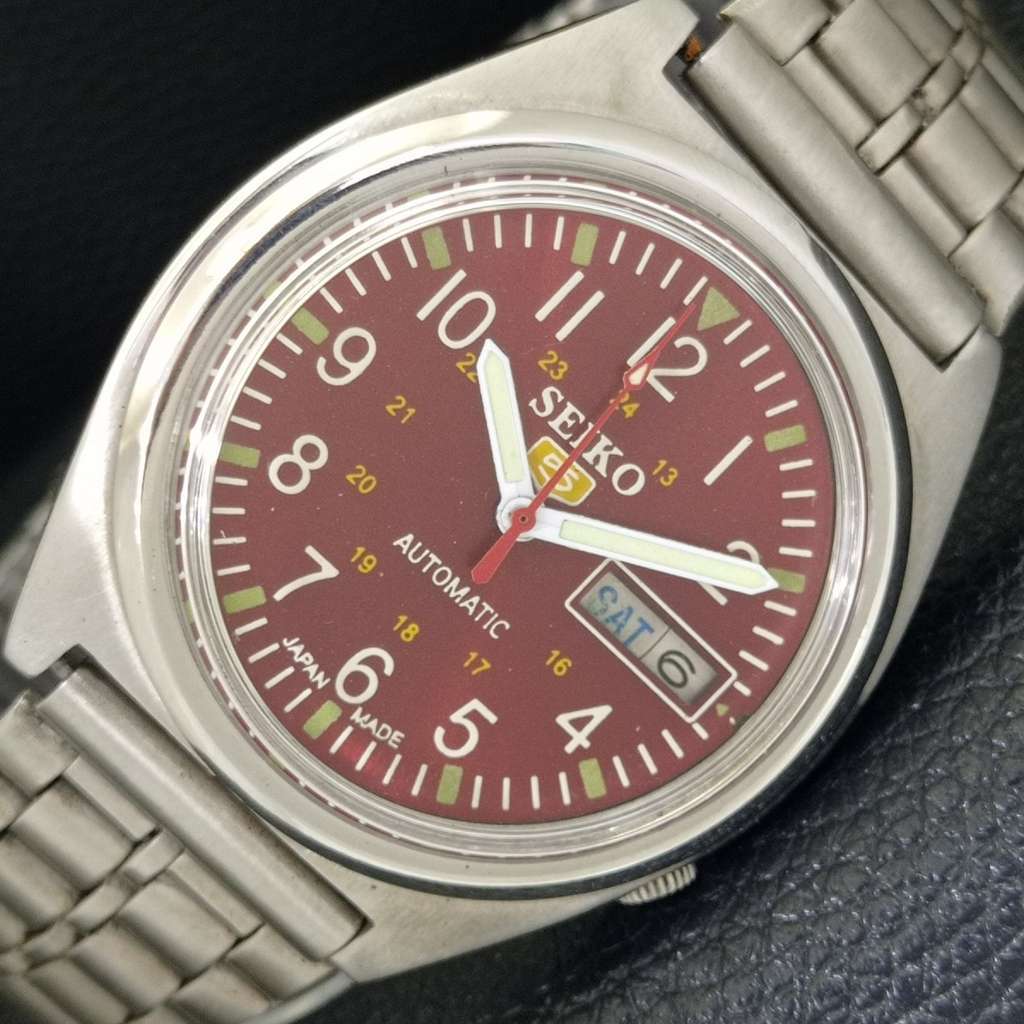 GENUINE VINTAGE AUTOMATIC SEIKO 5 JAPAN 7009A MENS MAROON DIAL WATCH a702403-1