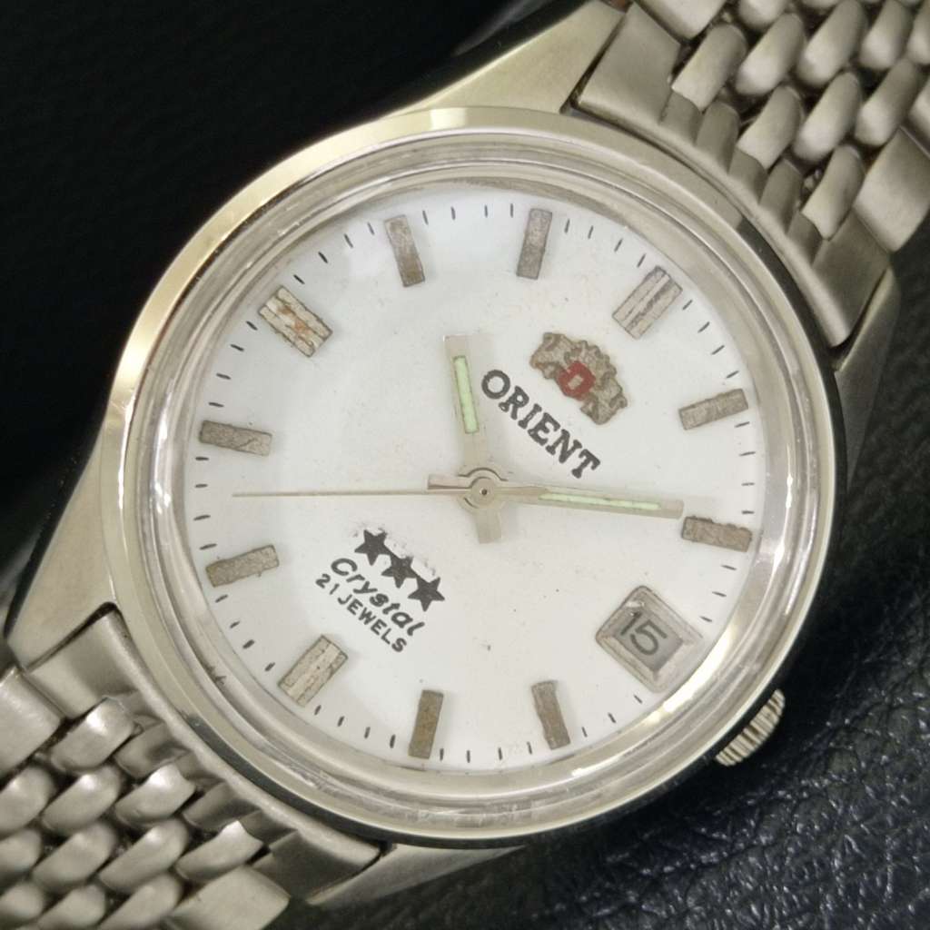 GENUINE VINTAGE ORIENT CRYSTAL AUTOMATIC JAPAN MENS WHITE DIAL WATCH a703580-1