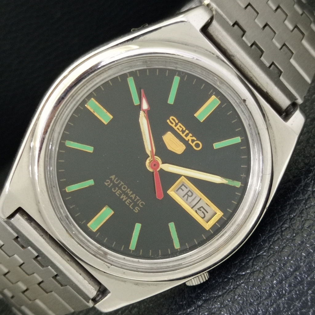 GENUINE VINTAGE SEIKO 5 AUTOMATIC 7019A JAPAN MENS BLACK DIAL WATCH a701903-1