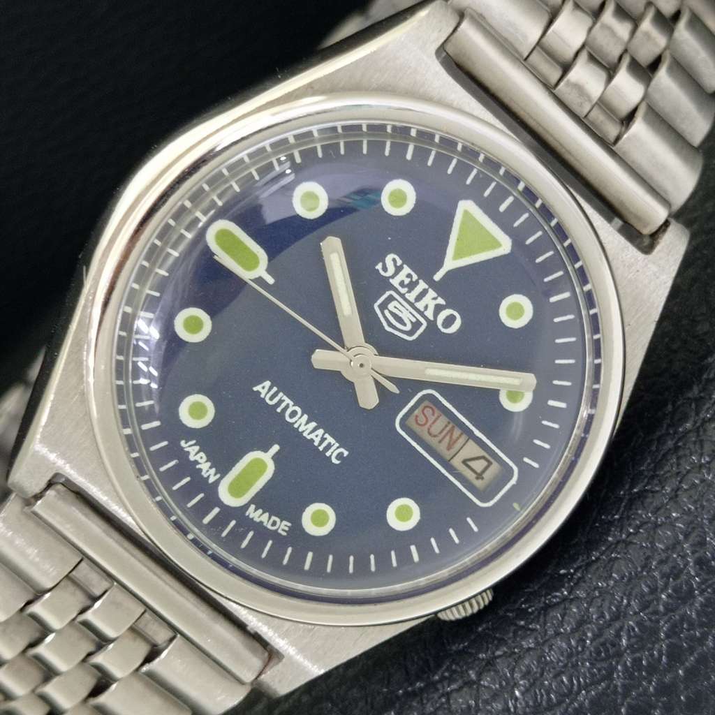 GENUINE VINTAGE SEIKO 5 AUTOMATIC 7019A JAPAN MENS BLUE DIAL WATCH a702347-1
