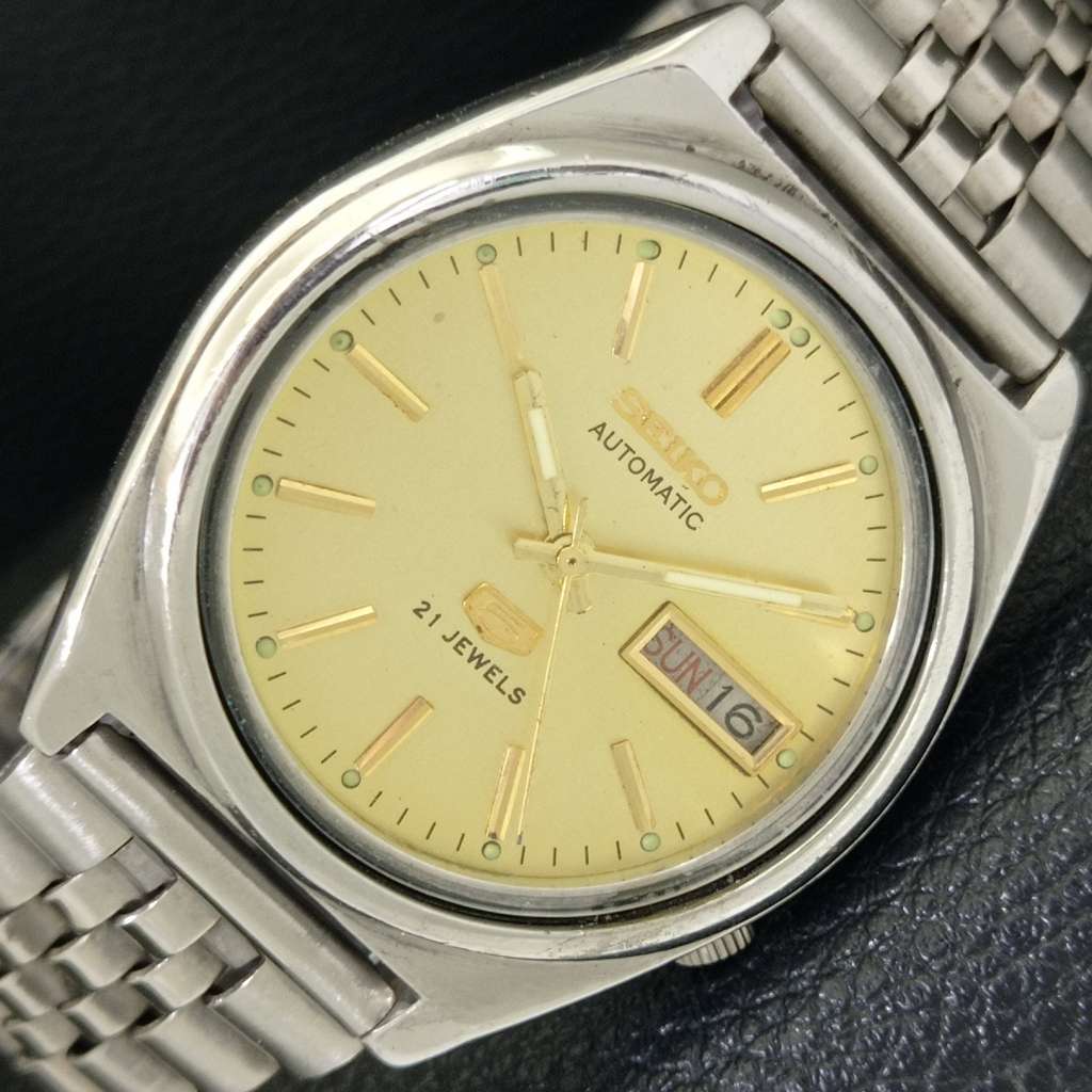 GENUINE VINTAGE SEIKO 5 AUTOMATIC 7019A JAPAN MENS GOLDEN DIAL WATCH a702623-1