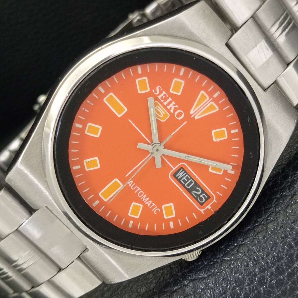 GENUINE VINTAGE SEIKO 5 AUTOMATIC JAPAN 7009A MENS ORANGE DIAL WATCH a702121-1