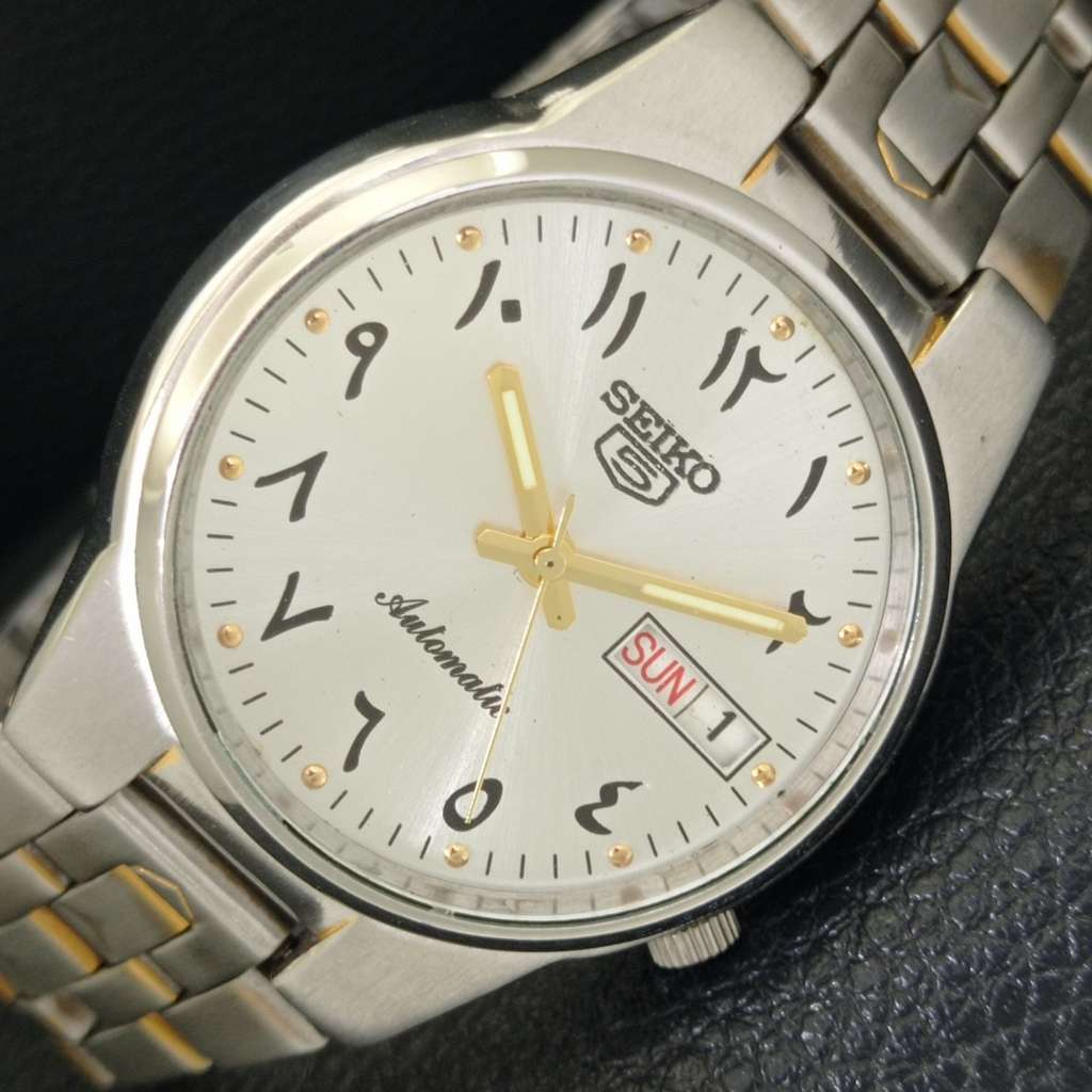 GENUINE VINTAGE SEIKO 5 AUTOMATIC JAPAN 7S26A MENS SILVER DIAL WATCH a702462-1