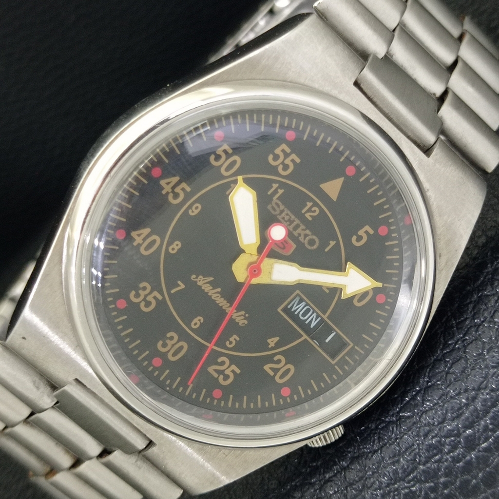 GENUINE VINTAGE SEIKO 5 AUTOMATIC JAPAN MENS 7019A BLACK DIAL WATCH a702396-1
