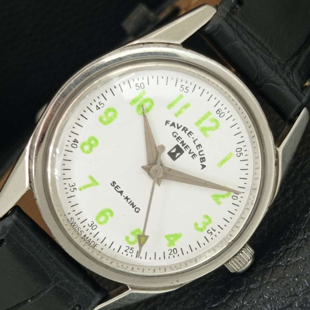 HAND-WINDING VINTAGE FAVRE LEUBA 101 SEA KING SWISS MENS WHITE WATCH a703011-1