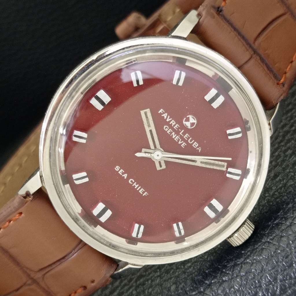 HAND-WINDING VINTAGE FAVRE LEUBA 253 SEA CHIEF SWISS MENS BROWN WATCH a702047-1