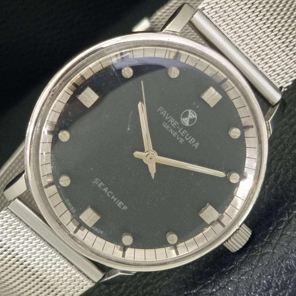 HAND-WINDING VINTAGE FAVRE LEUBA SEA CHIEF SWISS MENS BLACK DIAL WATCH a703840-1