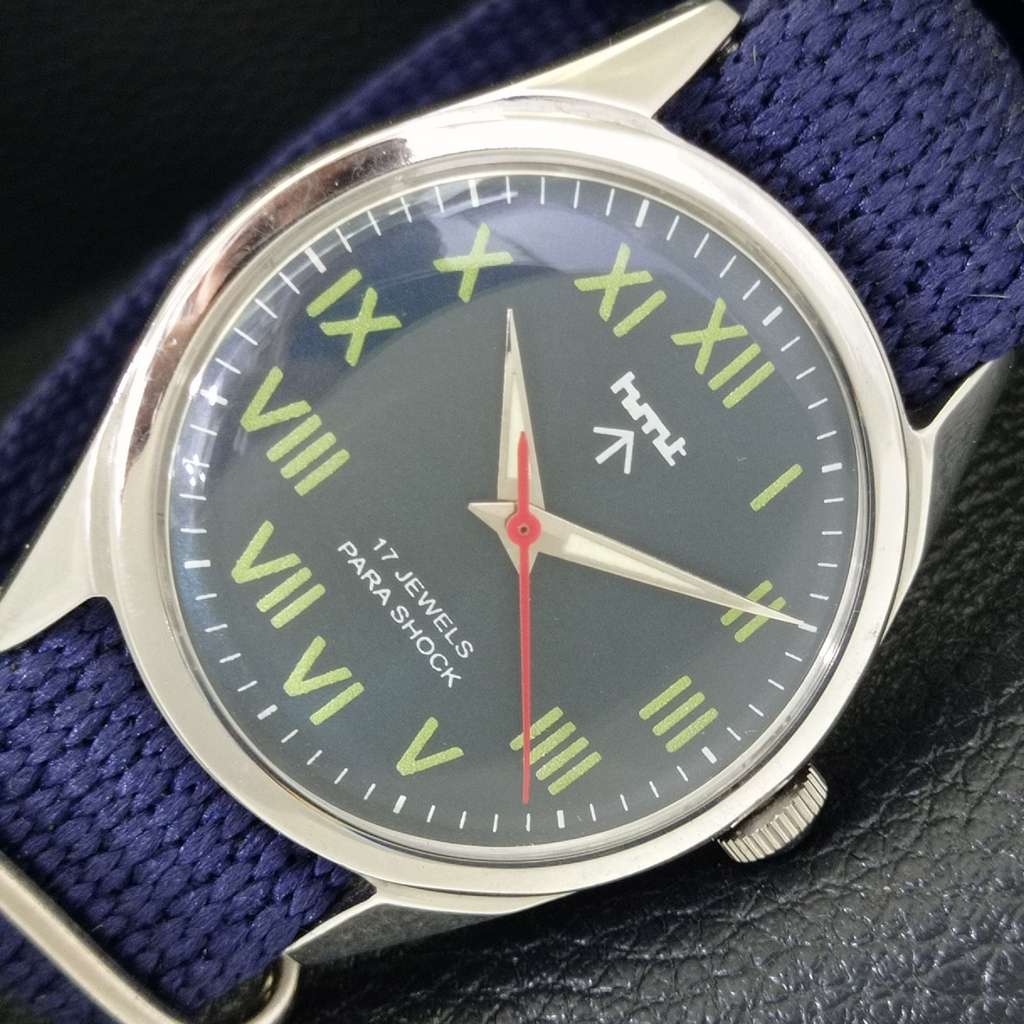 HAND-WINDING VINTAGE HMT INDIAN MENS ROMAN FIGURE BLUE DIAL WATCH a702872-1