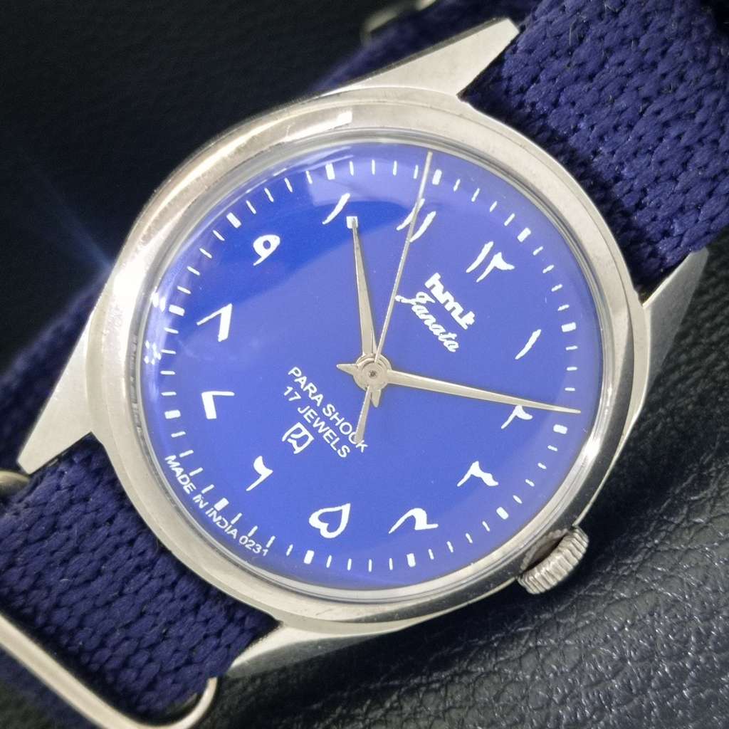 HAND-WINDING VINTAGE HMT JANATA INDIAN MENS ARABIC BLUE DIAL WATCH a703039-1