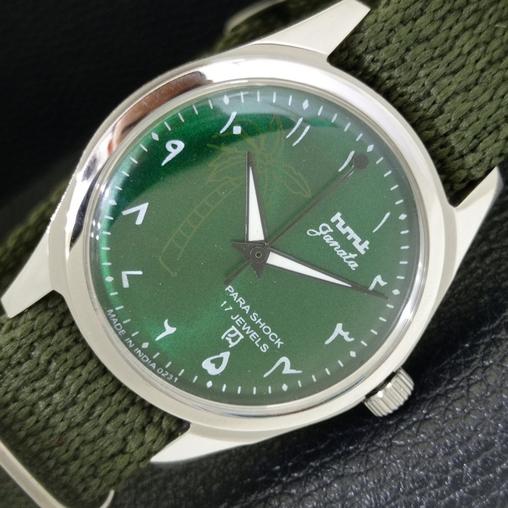 HAND-WINDING VINTAGE HMT JANATA INDIAN MENS ARABIC GREEN DIAL WATCH a440981-1