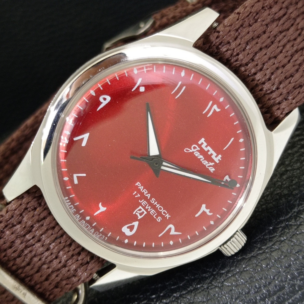 HAND-WINDING VINTAGE HMT JANATA INDIAN MENS ARABIC RED DIAL WATCH a441059-1