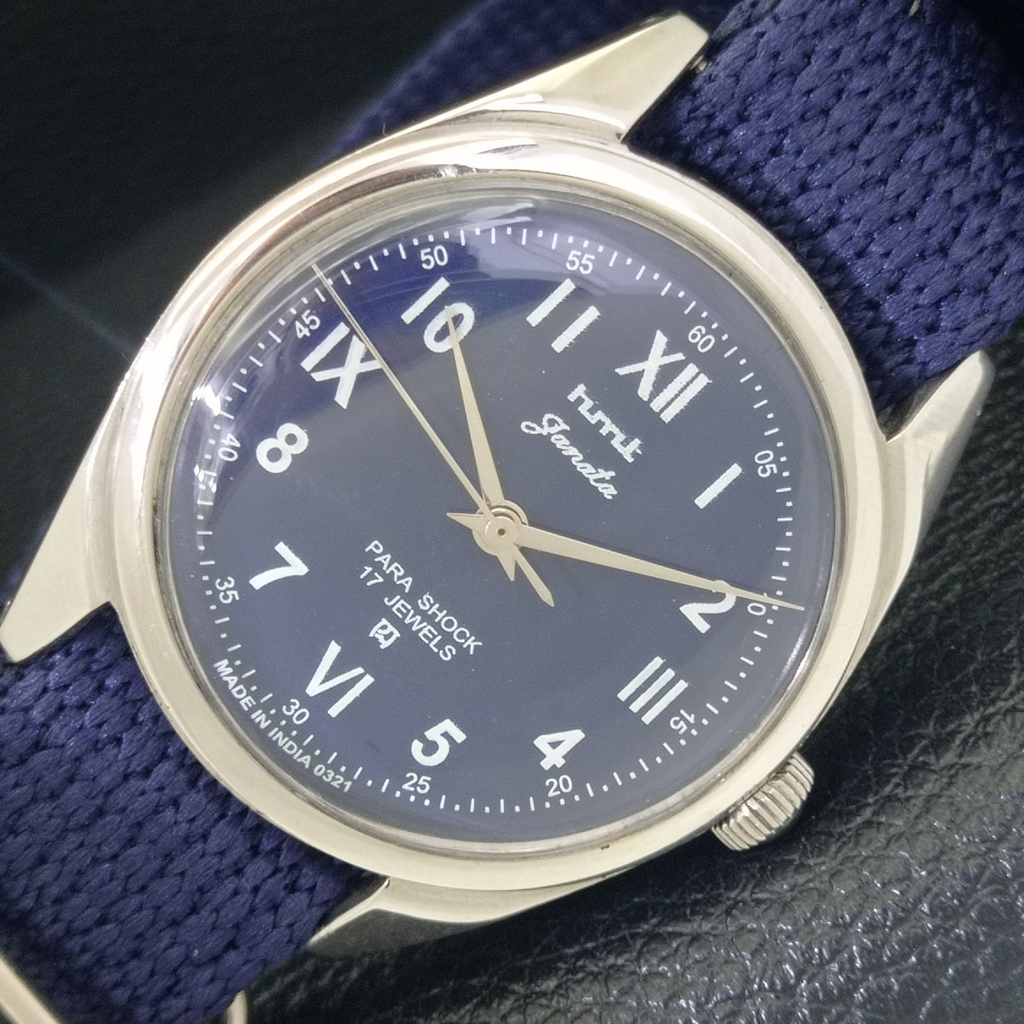 HAND-WINDING VINTAGE HMT JANATA INDIAN MENS BLUE COLOR DIAL WATCH a700072-1