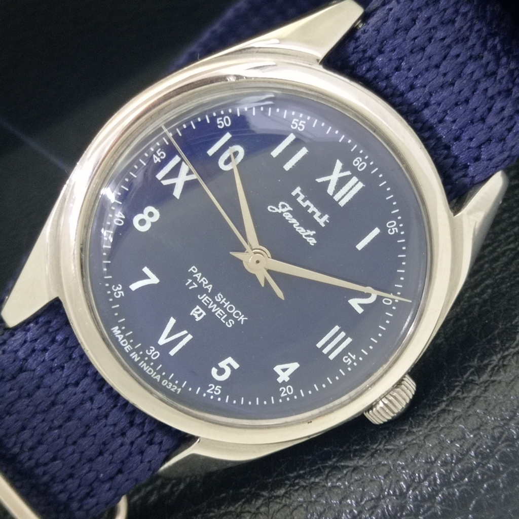 HAND-WINDING VINTAGE HMT JANATA INDIAN MENS BLUE COLOR DIAL WATCH a700076-1