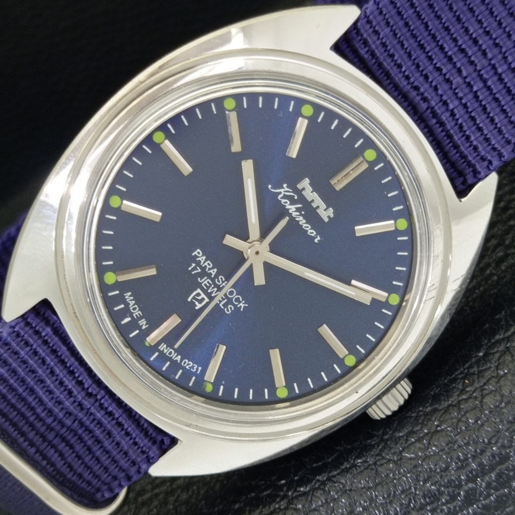 HAND-WINDING VINTAGE HMT KOHINOOR INDIAN MENS BLUE COLOR DIAL WATCH a440978-1