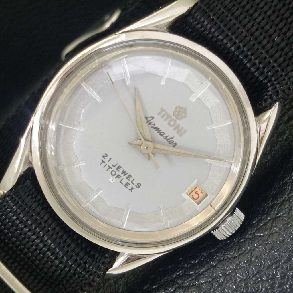 HAND-WINDING VINTAGE TITONI AIRMASTER TITOFLEX SWISS MENS GREY WATCH a703236-1