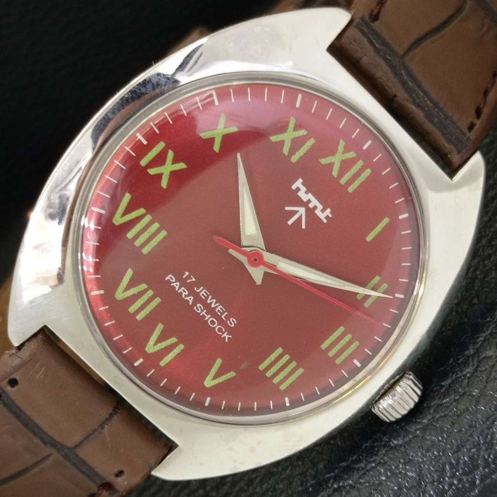 HMT HAND-WINDING VINTAGE INDIAN MENS ROMAN FIGURE RED COLOR DIAL WATCH a702843-1