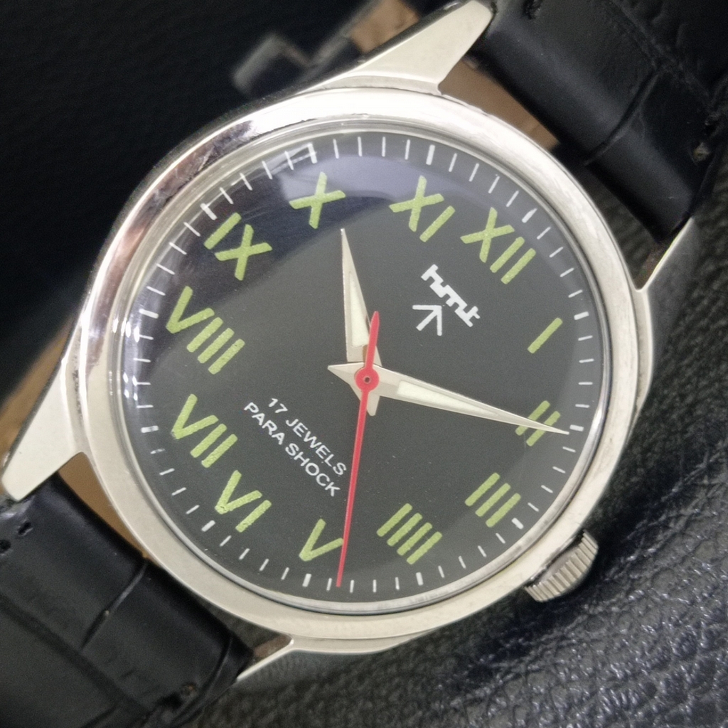 INDIAN VINTAGE HMT HAND-WINDING MENS ROMAN FIGURE BLACK DIAL WATCH a702885-1