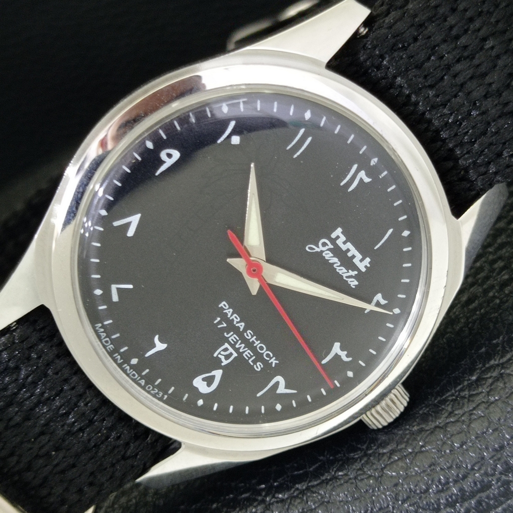 INDIAN VINTAGE HMT JANATA HAND-WINDING MENS ARABIC BLACK DIAL WATCH a441057-1