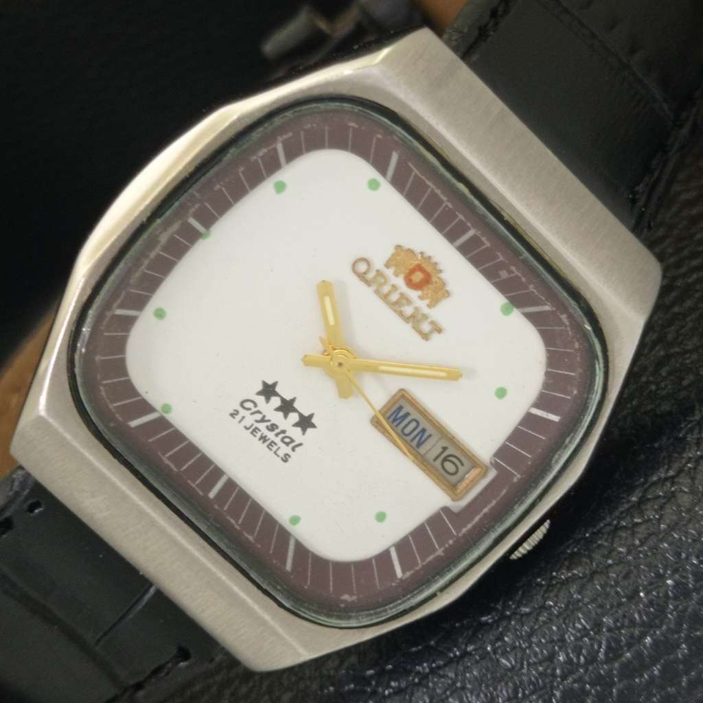 JAPAN VINTAGE ORIENT CRYSTAL AUTOMATIC 46943 MENS WHITE DIAL WATCH a703318-1